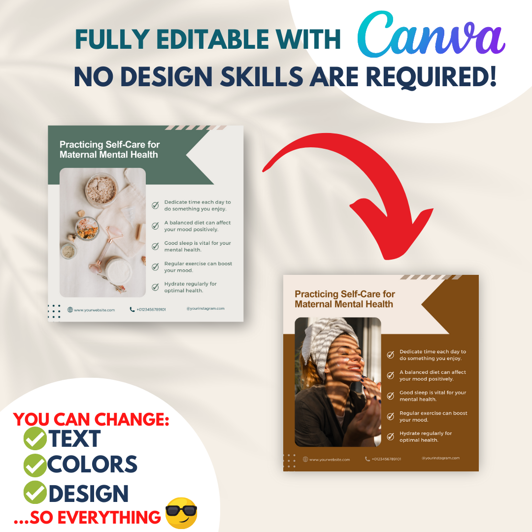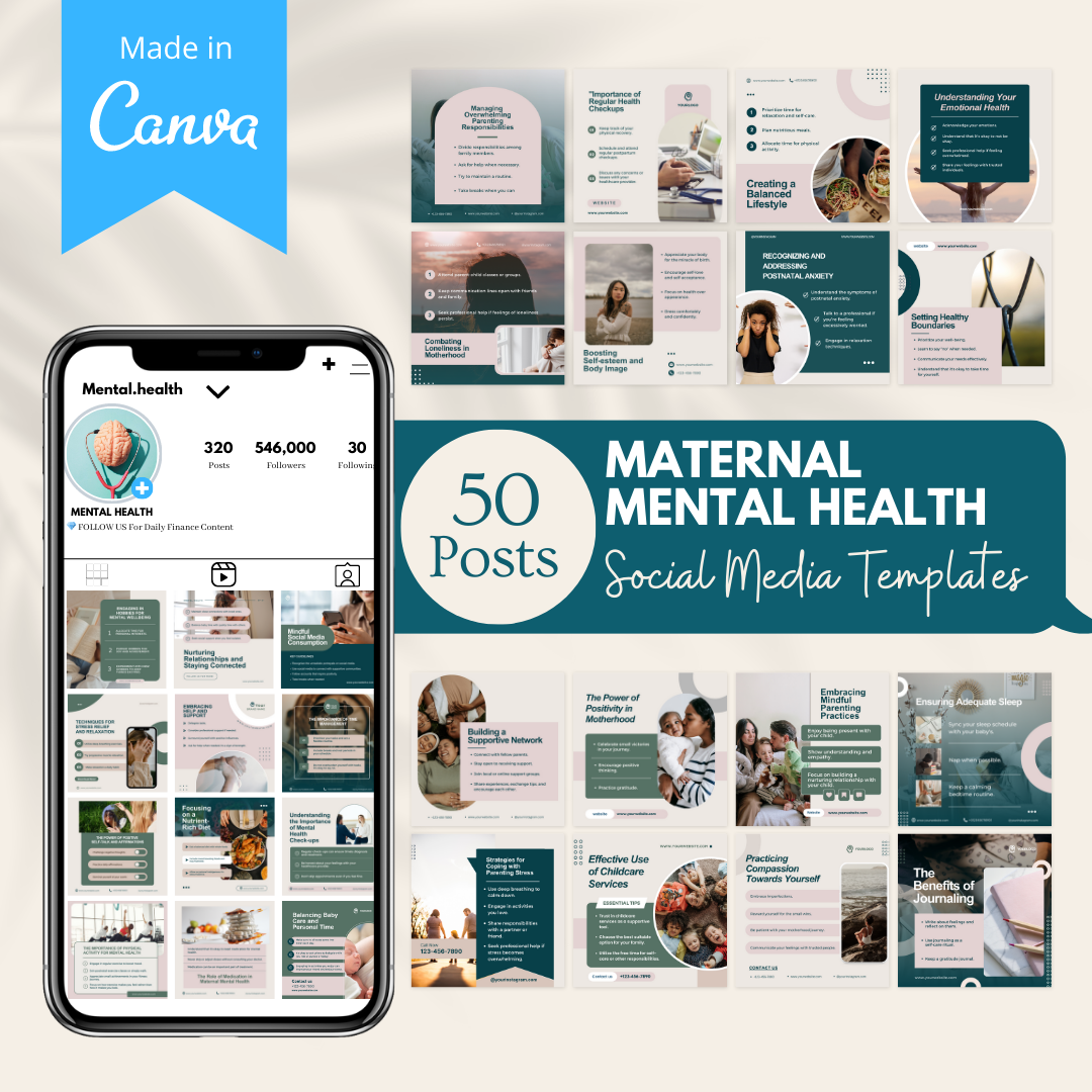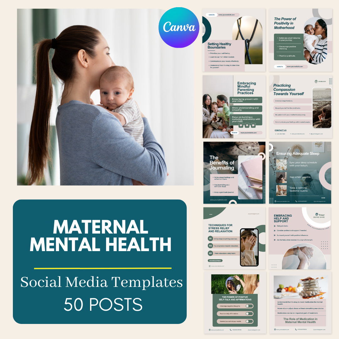 Boost your online presence today with our "Maternal Mental Health" Social Media Templates Bundle! Begin creating content that resonates with your audience, highlighting the importance of mental well-being in motherhood! 🤱🌟❤️