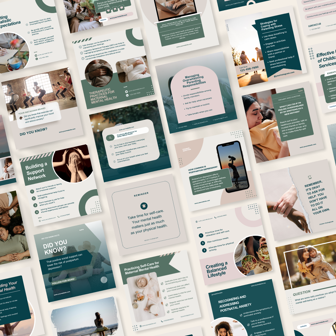Use these templates to consistently engage with your audience, providing content that is informative, supportive, and empowering. Save time, effort, and money, focusing on what matters most — supporting mothers in their mental well-being journey. 🤱⏰💰