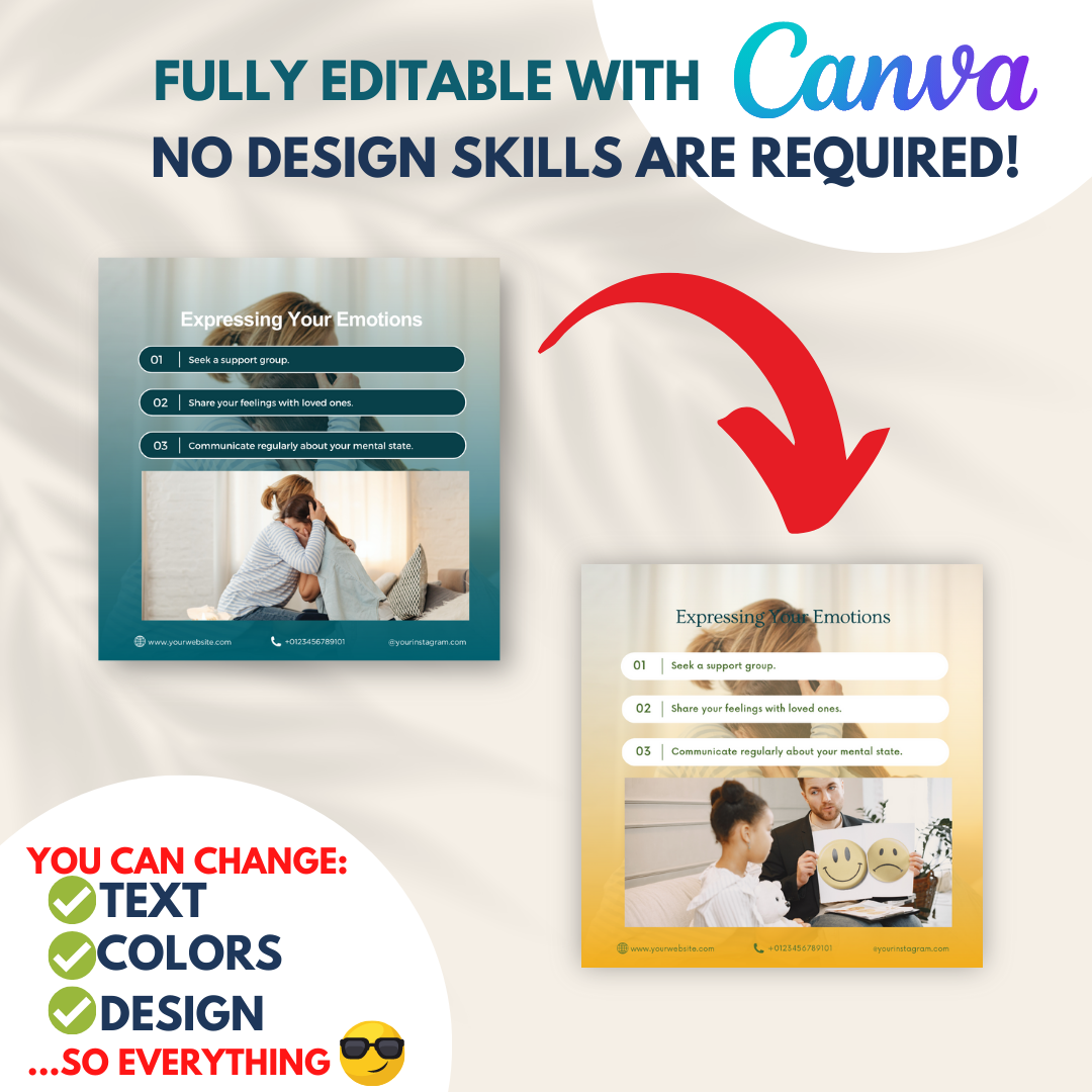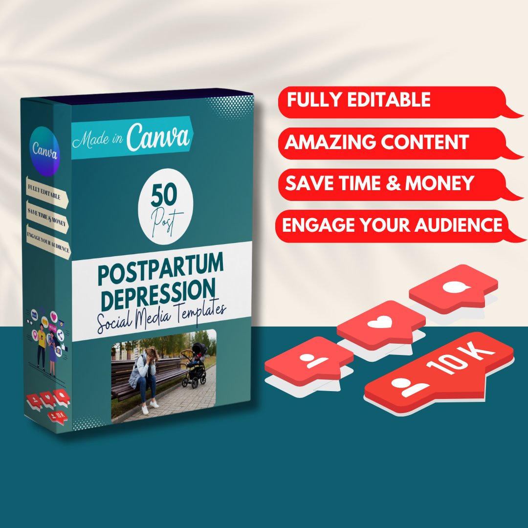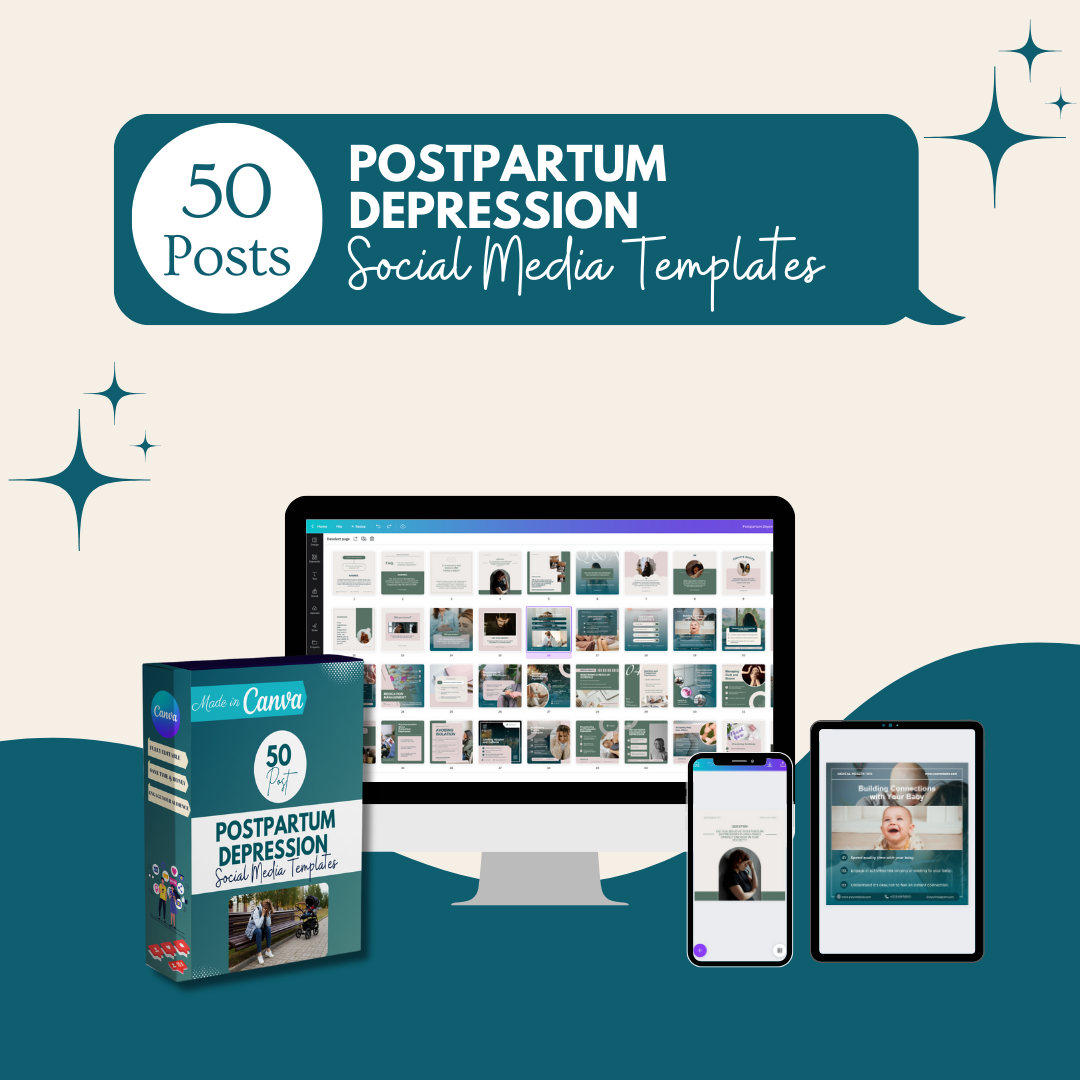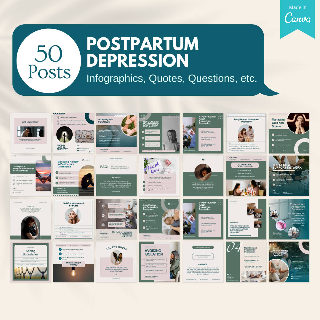 This special bundle includes 50 meticulously crafted Canva templates, designed specifically to help you disseminate vital information and insights about postpartum depression. Engage your audience with informative infographics, meaningful quotes, insightful questions, and enlightening "did you know" facts about the challenges and realities of postpartum depression. 🎨🤱🔍