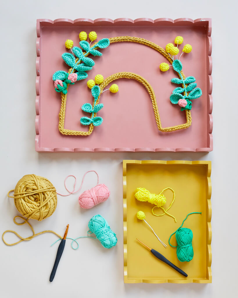 I love a crochet wreath for its evergreen colour, and as a piece that you can bring out year after year. This happy spring version will bring you a little pick-me-up, and brighten up even the drizzliest of rainy spring days.