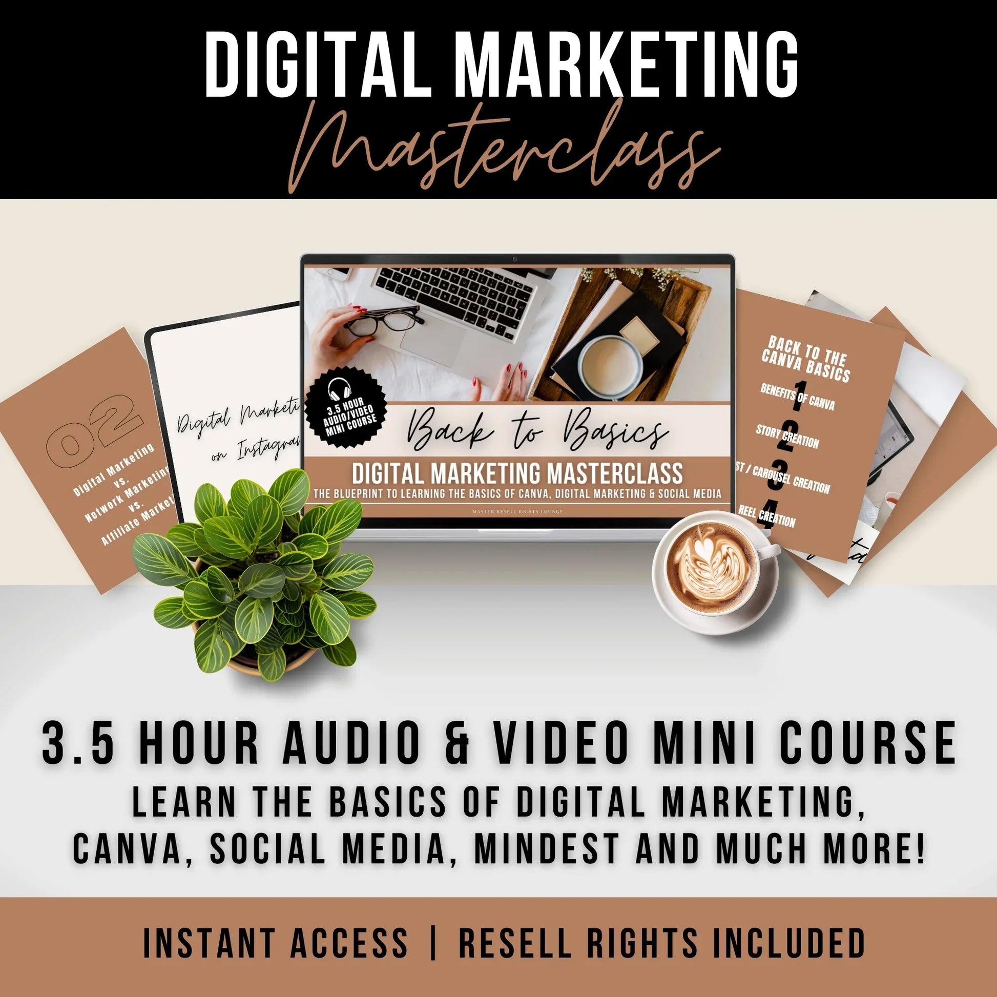 The Back to Basics Digital Marketing Masterclass is your one-stop solution for digital marketing success. Whether you want to boost your social media game, create and sell digital products, or even make money by reselling this course—it’s all here. Ready to get started?