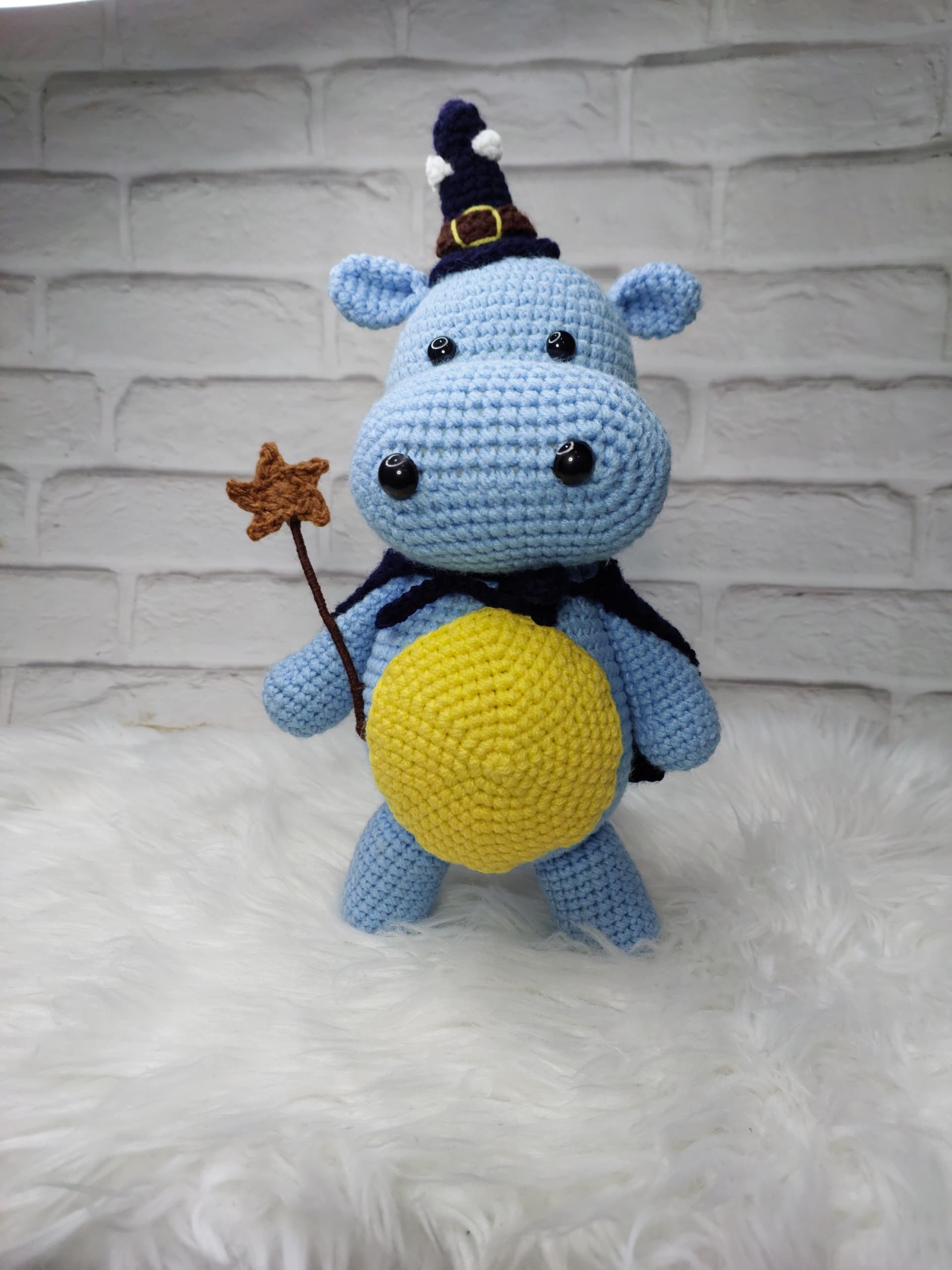 A cute wizard hippo with wand and hat, ready to bring a touch of magic to your collection.