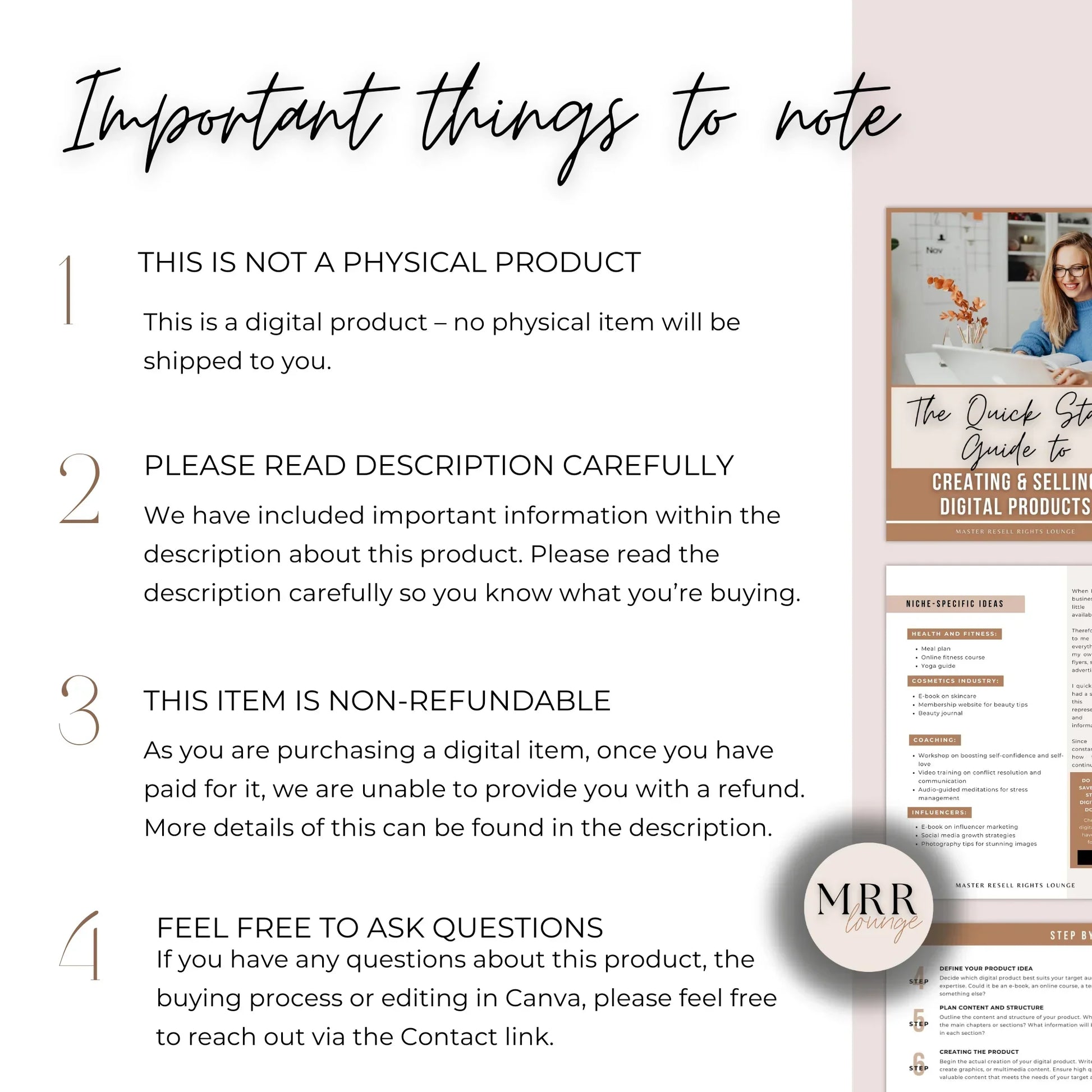 'The Quick Start Guide to Creating and Selling Digital Products' is more than just a guide; it's a beacon for aspiring digital entrepreneurs ready to navigate the dynamic world of online business. At MRR Lounge, our mission is to empower you with the knowledge, tools, and confidence to create, sell, and thrive.