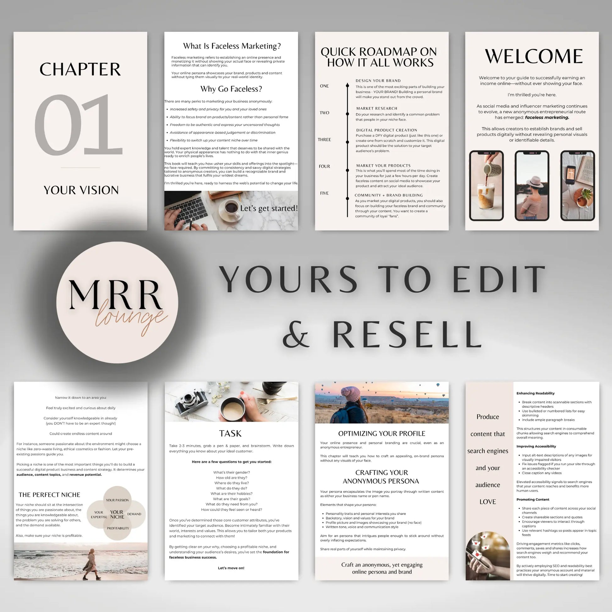 At MRR Lounge, our mission is to empower you with the tools and knowledge needed to create successful, resellable digital products. This comprehensive 77-page guide is designed to help you develop a faceless brand that generates passive income, all while preserving your anonymity.